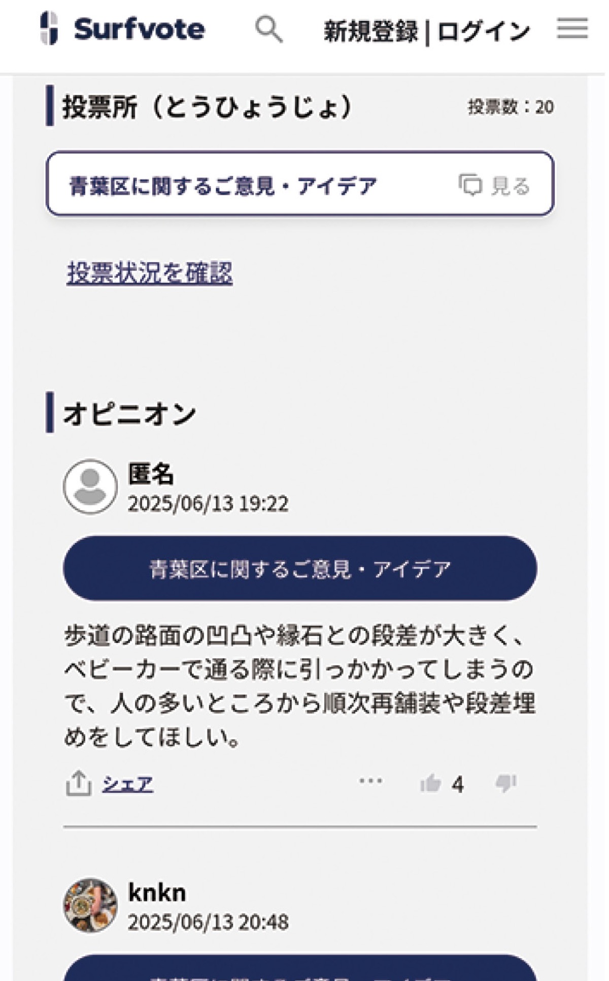 横浜市各区における地域のニーズや課題を把握し、施策の参考にするための意見募集がデジタルプラットフォーム「Surfvote」を活用して7月10日(木)まで行われいている。