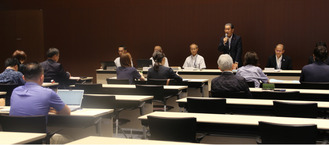 市選挙管理委員会から立候補に必要な書類や選挙運動の注意点などが説明された。説明会に参加していなくても立候補はできる。