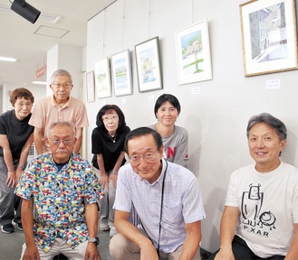 水彩画教室「美楽画塾」による水彩画の展覧会が若草台地区センター(若草台20の5)2階で行われている=写真。展示期間は8月初旬までを予定。