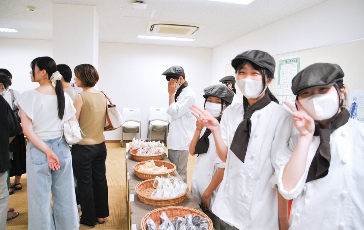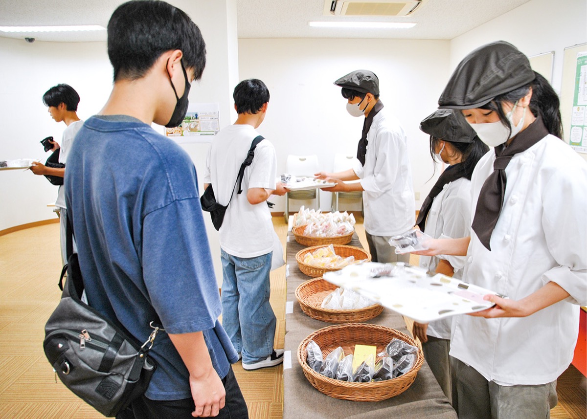 この取り組みは生徒に一足早く社会経験を積ませることを目的に10年ほど前にスタート。生徒自身で、販売する商品の企画、製造、販売までを実施している。また、地域向けにチラシを作り、配布まで生徒が行った。今回の販売には1年生から3年生まで36人が携わり、5種類400個の製菓を準備した。