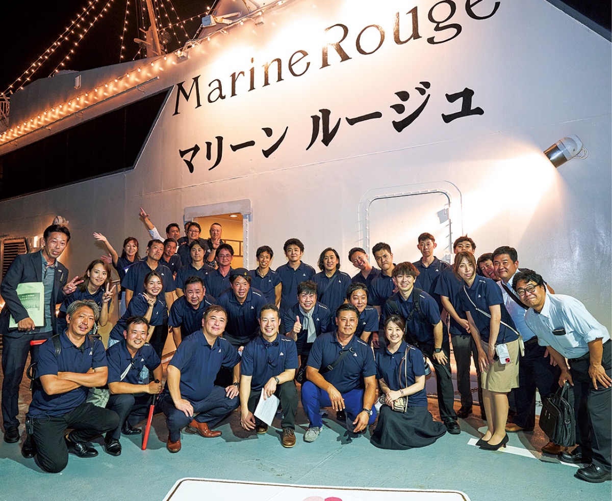 同日、クルーズ船「マリーンルージュ」で開かれた記念祝賀会には関係者約130人が出席。サザンオールスターズの大ファンである川嶋部会長たっての希望でトリビュートバンド「いとしのエリーズ」のスペシャルライブも開催された。クルーズ船の名前が歌詞に入った『LOVE AFFAIR〜秘密のデート』が流れると会場は大盛り上がりを見せた。