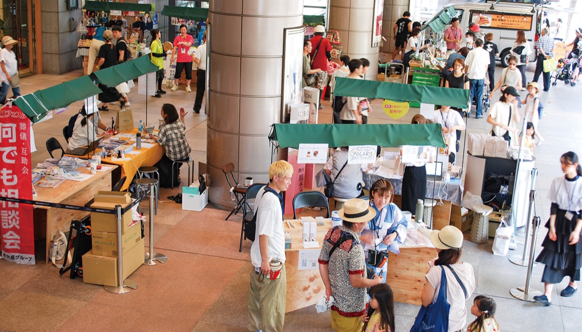 当日、会場となった同施設South─1本館1階アトリウムには、飲食から美容、雑貨までさまざまなジャンルの店舗が出店。スーパーボールすくいなどの子ども向けブースもあり、会場は午前中から多くの来場者でにぎわっていた。