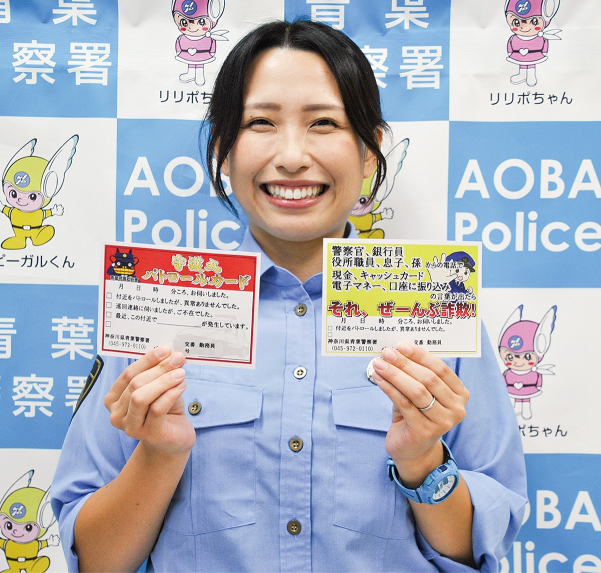 青葉警察署はこのほど、各家庭へ巡回した際に渡す「パトロールカード」を刷新。鐵神社(鉄町1553)の獅子舞をモチーフにしたキャラクター「青葉守護丸巡査」が印刷されたパトロールカードを作成した。既存のカードより一回り大きく、赤を基調としたのが特徴。厚紙で作られており、玄関に貼ることも可能となっている。カードをデザインした岩澤樹巡査は「作成したこのカードで、一件でも被害を減らすことができればうれしい」と笑顔で話した。配布は7月から開始している。