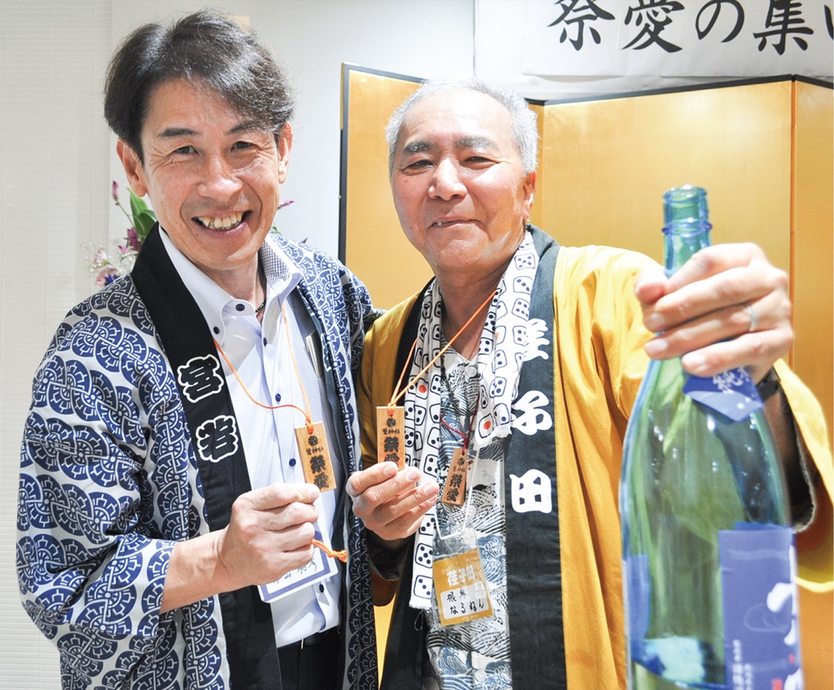 かつては同窓生や親戚など、担い手皆が顔見知りだった同例大祭。人口や学校の増加を背景に、各宮のつながりが希薄になる中、再度交流を図ろうと、2世代目にあたる当時の若手から成る「祭愛の集い」が立ち上がった。以来20年、各宮のつながり作りに貢献してきた。立ち上げメンバーの一人、荏子田神輿会の根岸成年さんは「様々な人と交流し、祭りの日も現地で楽しく話せることに喜びを感じる。これからを担う若い世代にも、自由に仲良く頑張ってもらいたい」と話していた。