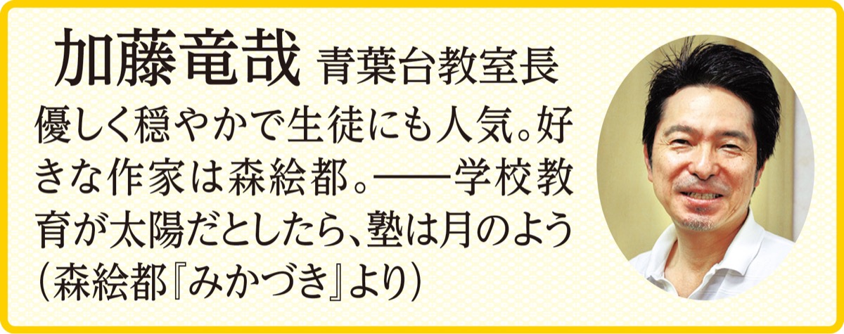 同塾には、探求学習に強い生徒も多い。それは『本質を知る』学びが、社会で生き抜く力になるから。自ら課題を見つけ、学びの道筋を組み立て、答えを見つける問題解決力を育てていく。「生徒の人生に関わること。保護者の方とタッグを組んで『育てる』立場として、責任をもって生徒に接している」と、青葉台教室の加藤教室長。