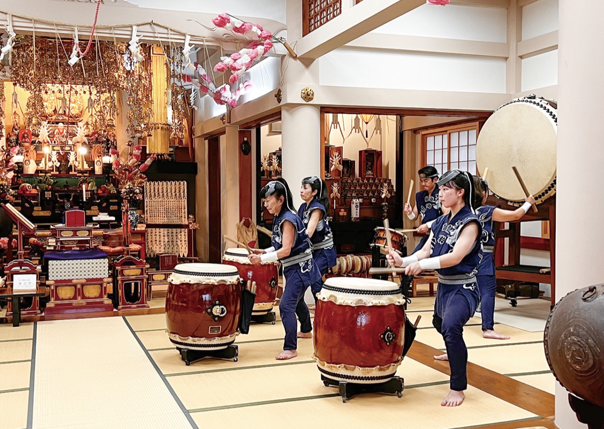 境内ではからあげ、おにぎり、ホットドッグなどの飲食販売の他、本堂内での太鼓集団「鼓粋」の演奏、地域の子どもたちへの祈祷・祈願などが行われた。また、最後にはお菓子撒きを実施。子どもたちは我先にと拾い集めていた。