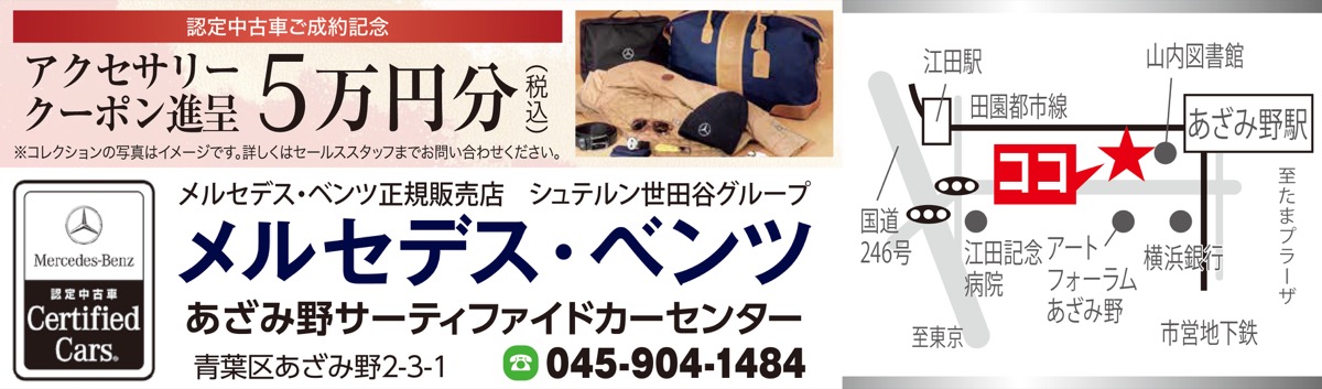 青葉区唯一の正規販売店「メルセデス・ベンツあざみ野」では、新年1月4日(日)から12日(月・祝)まで初売りイベント「ニューイヤーフェア」を開催する。