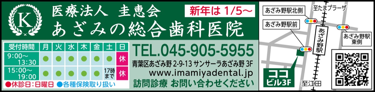 あざみ野駅西口徒歩1分の「あざみの総合歯科医院」(今宮圭太院長)は、充実した院内設備と感染症対策を含めた衛生環境を基盤とし、一般の保険診療から自由診療まで、人体に安全な材料を用いて上質な治療を提供している。そんな同医院は2人の名誉教授を招聘し、より充実した高齢期の治療を展開している。