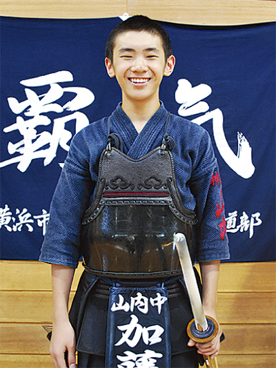 竹刀で遊んでいる友達を見て市が尾小学校3年時から始めた剣道。部活のほか、山内中近くの道場に通う。現在3年生だが、引退は考えていない。「剣道を励みに勉強を頑張れるんです」と話す。