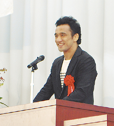 会場となった体育館には生徒や保護者のほか地域住民も参加し、同校の30周年を祝った。染谷校長らのあいさつの後、第7期卒業生で総合格闘技「修斗(しゅうと)」の世界フェザー級チャンピオンの勝村周一朗さんが登壇。生徒たちに対し「夢のかなえ方」をテーマに講演した。自身の経験を踏まえ「頑張るのは当たり前。普段のことにもまじめに取り組み、応援してもらえる人になってほしい」とメッセージを送ると、生徒らは真剣に耳を傾けていた。