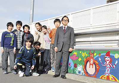 今回の事業は、昨年2月に自治会と美化活動を行った市立鴨居小学校(大森英司校長・全校生徒518人)との間で「壁画を作製してポイ捨てや落書きをされない環境を作ろう」と案が持ち上がり実施されたもの。