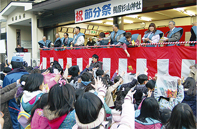 節分の日にあたる今月3日、区内各地では節分祭が開催され、多数の来場者で賑わいをみせた。