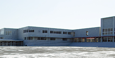 3階建ての校舎は太陽光パネル、雨水を生かしたトイレ洗浄設備など環境を配慮した設計となっている。また、市立小中学校初の「屋内型プール」が今年度中に完成する予定。地域公募で決まったシンボルツリー「紅しだれ桜」が植わる中庭やウッドデッキテラスもあり、「昼食は教室外でとることもできるようになれば」と同校は話す。