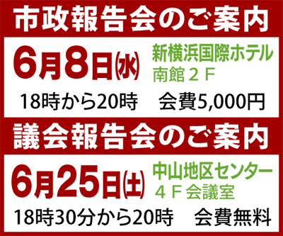 この原稿を書いている時は、議会中で、震災対策関連予算(緑区庁舎耐震対策等16事業、64億6,900万円)・敬老パスの継続・Y150の調停等の議案を審査しております。