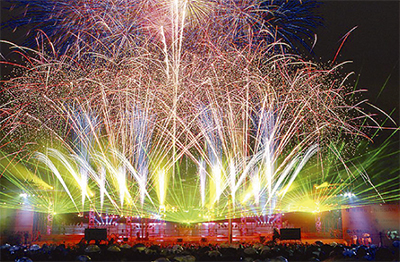 花火で港の誕生日祝う
