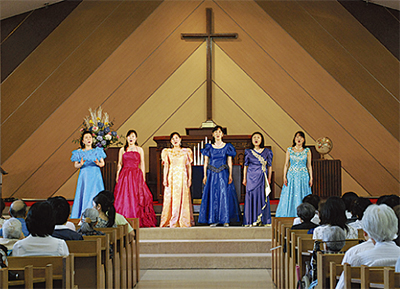 当日は、「ゴスペルキャラバン”レプタ”」を招きコンサートを実施。賛美歌「いつくしみ深き」や「AmazingGrace」などがチャペル内に響き渡り、参加者は美しい歌声に聞き入っていた。