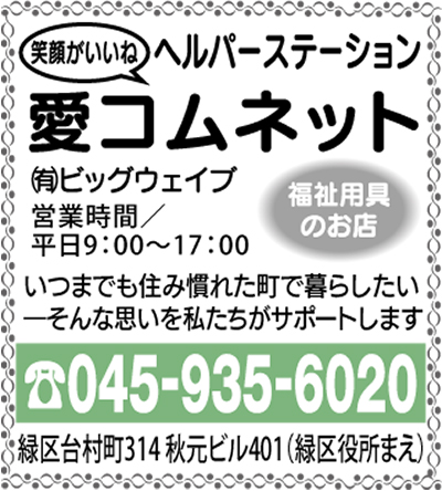 「笑顔がいいね!」。これは緑区のヘルパーステーション「愛コムネット」(高鹿真杉代表)が掲げる合言葉だ。同社は高鹿代表が、自身の介護体験から「本当に必要な介護支援を自分たちの手で作り上げたい」と設立し、先月12周年を迎えた。