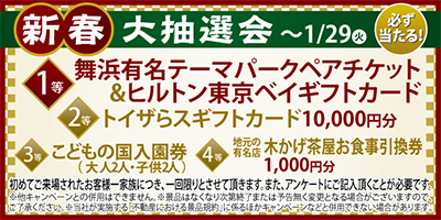 「駅に近くて生活が楽」、「静かな住宅街なのがうれしい」など入居者から喜びの声も多数。最終期(第5期)の販売開始は2月上旬を予定。残りわずかながら部屋の向きや階も選べる。なお1月29日(火)まで見学で来場した人に抽選で舞浜有名テーマパークペアチケット&ヒルトン東京ベイギフトカード他が当たる新春大抽選会を開催中。