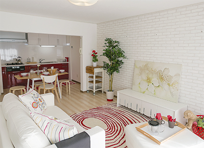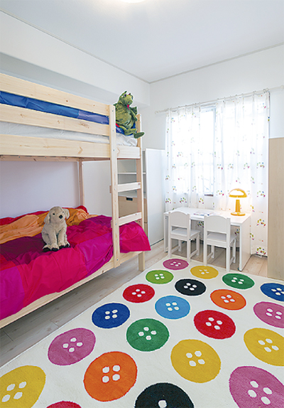 今回想定したのは40代夫婦、小学生の子ども2人が暮らす世帯。陽光降り注ぐ室内は白を基調とした明るい雰囲気で、イケア製の赤いキッチンをアクセントに加えることで温かみのある住空間を演出した。間取りは3LDK(78平方メートル)と広々スペース。家族の楽しい会話が聞こえてきそうな『住まいのあり方』を提案する。