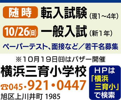 旭区上川井町の横浜三育小学校が、現1〜4年生の転入希望者を募集している。来春の新1年生の入試は、10月26日(日)に行う。