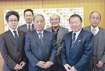 緑区内の実施地区である長津田自治連合会との調印式は先月28日、長津田地域ケアプラザで行われ、同連合自治会の井上会長のほかNPO法人横浜市集団回収推進部会の木村雅史事務局長(=写真・前列左)、横浜市資源リサイクル事業協同組合の根岸孝昭事務局長(=写真・前列右)が参加し執り行われた。