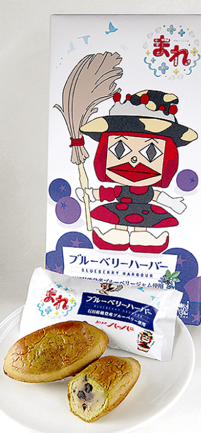 これは現在放映中の連続テレビ小説「まれ」のライセンス商品で、物語の舞台である石川県能登産のブルーベリージャムと栗餡を、こだわりの抹茶生地で包み込んだ逸品。抹茶のほろ苦さにブルーベリーの甘酸っぱさがアクセントになっている。パッケージには、同番組の語り手として登場する「魔女姫人形」のイラストやロゴをデザイン。25日から取扱店で一斉販売。発売を記念して、抽選会などのイベントも実施される。