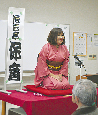 保育士で幼稚園教諭の免許を持つ異色の社会人落語家・花伝亭保育さん(区内長津田在住)を招き、ひと時の高座を堪能した。