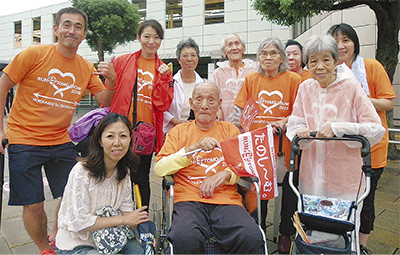 池田さんは「自分は認知症ではないが、少しでも励みになれば」と今回出場を決意。この日、自身が通うデイサービスの別支店である「たのし〜む。大和」から大和駅までの約1Kmを担当した。