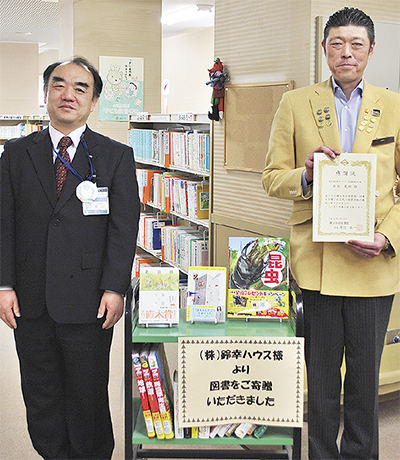 長津田と青葉台に事業所を構える鈴幸ハウス(鈴木範親代表取締役)が緑図書館に本を寄贈し、2月16日、同所で感謝状の贈呈式が行われた。