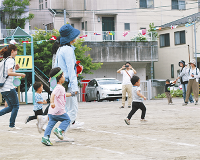 これは地域に住む2、3歳の幼児を対象に「大きなグラウンドで、親子で運動会を楽しんでもらう」ことを目的として行われたもので、この時期での開催は今回で2回目。同園によるとこうした運動会を実施することで、母親同士の交流の場の提供が行えるという。「子育ての相談場所がないという話も聞くので、こうした形で子育て支援への貢献ができれば」と説明する。