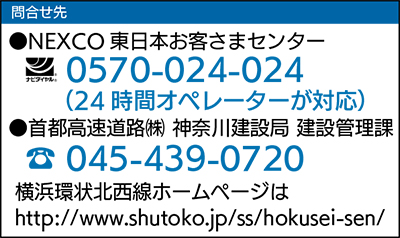 NEXCO東日本と首都高速道路(株)は、建設中の横浜環状北西線・横浜港北ジャンクションの橋りょう架設工事に伴い、10月14日(土)と21日(土)の各日22時から翌朝6時までの予定で、交差する第三京浜道路・港北IC〜保土ヶ谷IC間の上下線を通行止めにすると発表した。