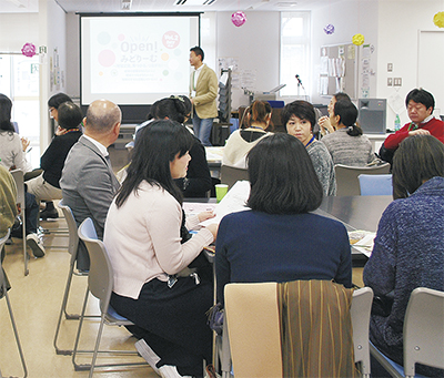 緑区市民活動支援センターみどりーむで2月23日、異分野交流会「Open!みどりーむ」が開催された。昼の時間帯だったこともあり、女性の参加者も多く会場は賑わいをみせた。