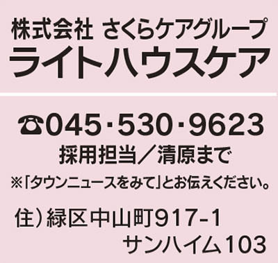今年、(株)さくらケアグループとしてリニューアルした訪問介護事業所「ライトハウスケア碧」(区内中山町)。現在登録ヘルパーを募集している。週1日、30分からOK。
