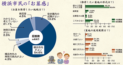 横浜市が5年毎に実施している「墓地に関する市民アンケート調査」。昨年8月10日〜9月11日に行われた最新版(20歳以上の市民が対象、回収数2087件・回収率41・7%)によると、「墓地の取得を希望する」は21・1%。その理由として「将来のために取得したい」(72・3%)が最も多く、「他都市から移したい」(13・8%)、「遺骨があるので墓地がほしい」(7・3%)と続いた。