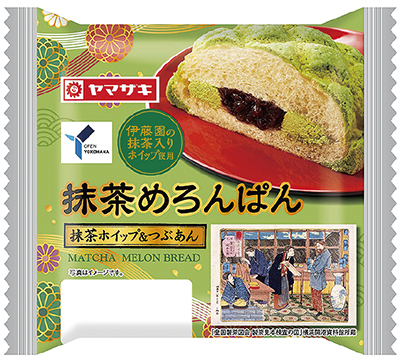 山崎製パン(株)横浜第二工場と(株)伊藤園、横浜市が共同開発した「抹茶めろんぱん 抹茶ホイップ&つぶあん」=写真=が6月末まで、神奈川県内のデイリーヤマザキや横浜市内のイトーヨーカドーのほか、関東各地で販売される。
