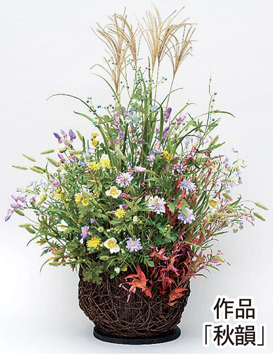葉さんは同展に昨年初めて出品すると、内閣総理大臣賞を受賞。今年は更に「秋の野草で深まりゆく秋の風情を表現したい」と、松虫草やトリカブトなど9種類のクレイアートで創作した作品名「秋韻」を出品し、2年連続となる内閣総理大臣賞を受賞した。