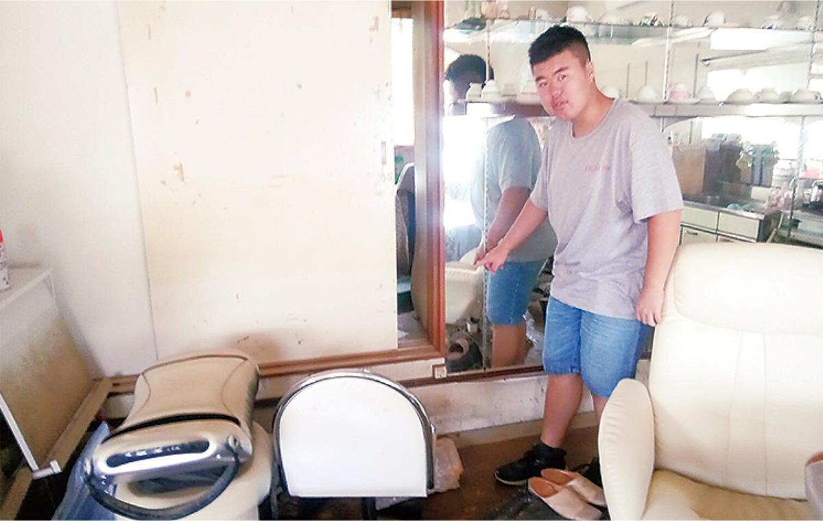 その後、浸水した介護施設へ。水は引いていたが、床一面泥だらけの状態。「片付けを頑張り、利用者をいつもの施設に早く戻してあげたい」。その一心で、床の掃除、使用できなくなった家具の運搬など、幅広くボランティアに汗を流した。「引っ越し屋さんでアルバイトしているので、体力には自信があった」