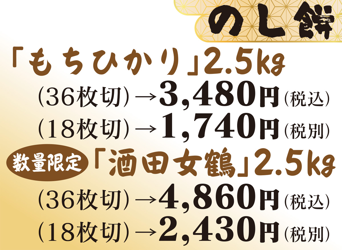 また、山形県産「酒田女鶴」を使用した「のし餅」も見逃せない。「もちひかり」「酒田女鶴」は共に、五つ星お米マイスター推薦米だ。