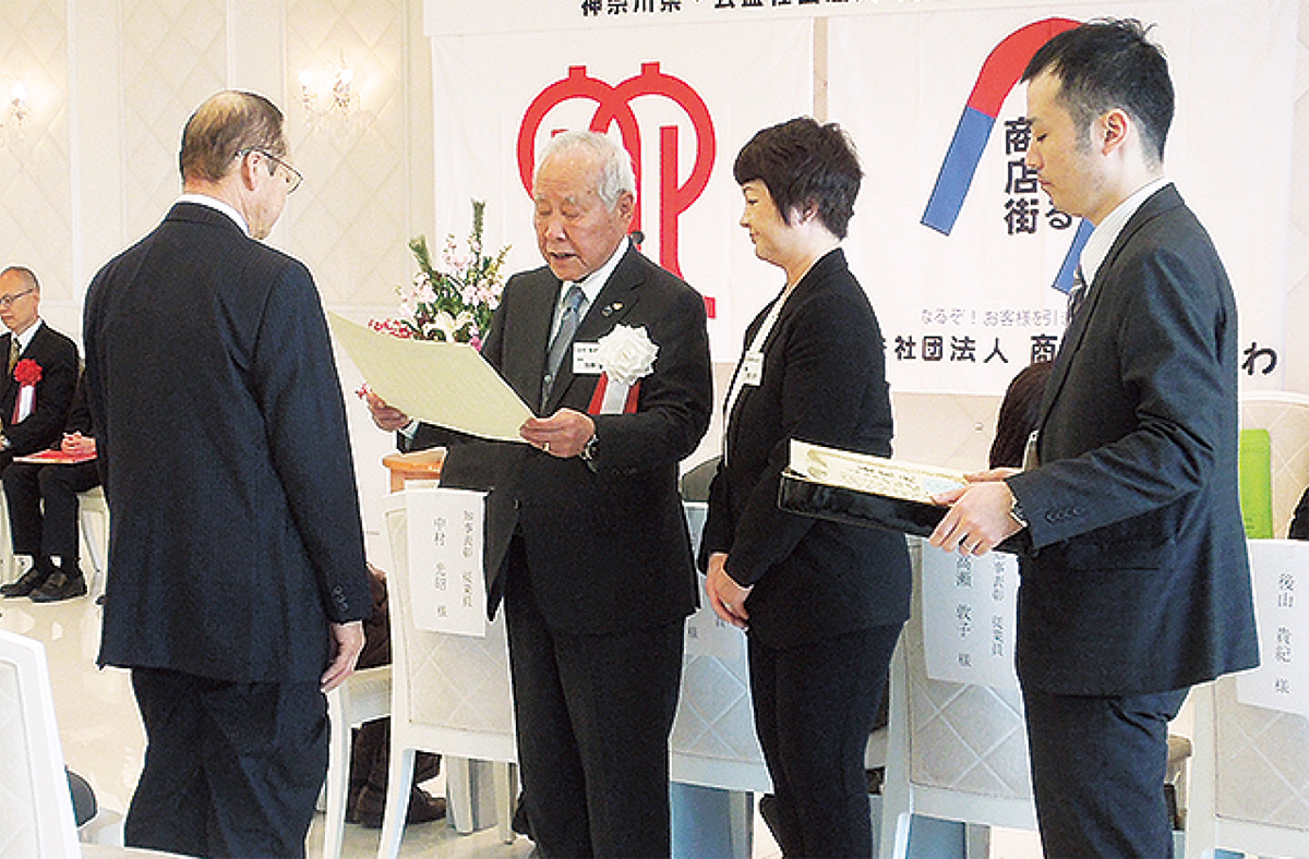 また、この日は公益社団法人商連かながわ会長表彰も実施。岡野誠一会長から商店街役員24人と商店街2団体に表彰状が授与された。