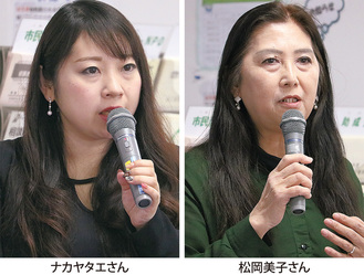また、毎回ゲストを呼び、発表が行われている。この日は、株式会社ボヌール代表取締役のナカヤタエさん、NPO法人グリーンママ理事長の松岡美子さんが登壇した。