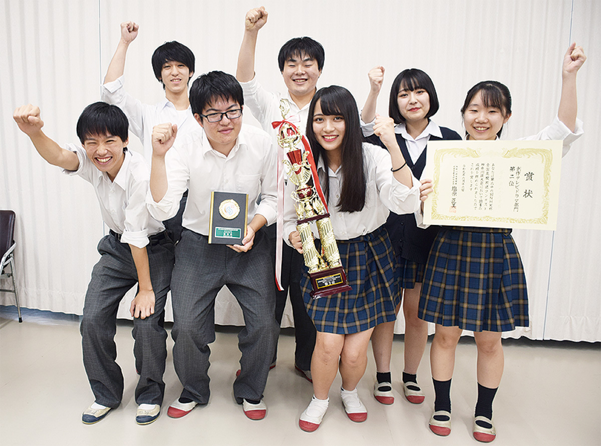 同部顧問の前里崇徳教諭によると、現在21人が所属する放送部だが、現在の3年生が入部する前年の部員はわずか1人だったという。その後は徐々に放送部としての知識を身に付け、昨年の県大会では4位入賞。審査員からの「台詞が棒読みで感情がこもっていない」という厳しい評価を糧に、全国大会出場を目標に活動を継続してきた。