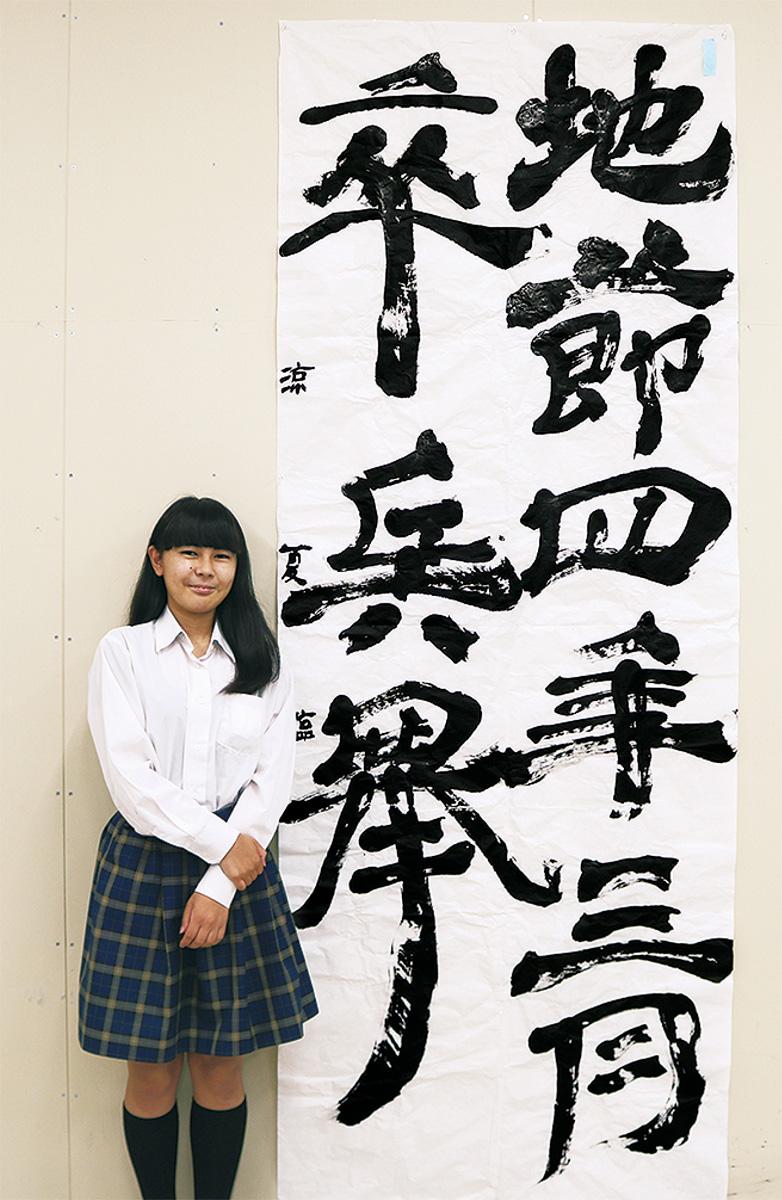 同校の書道部は、5年連続で総文祭への参加者を出しているが、本多さんが参加するのは初めてだ。「緊張もあるけれど、他校の書道部員とも交流できる機会なので楽しみたい」と笑顔だった。