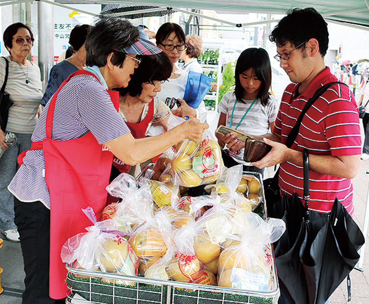 同直売所を主催する小山果樹組合の落合清治組合長は「中山駅近くなので、気軽に来てほしい。多くの人に味わってもらえたら」と笑顔を見せた。