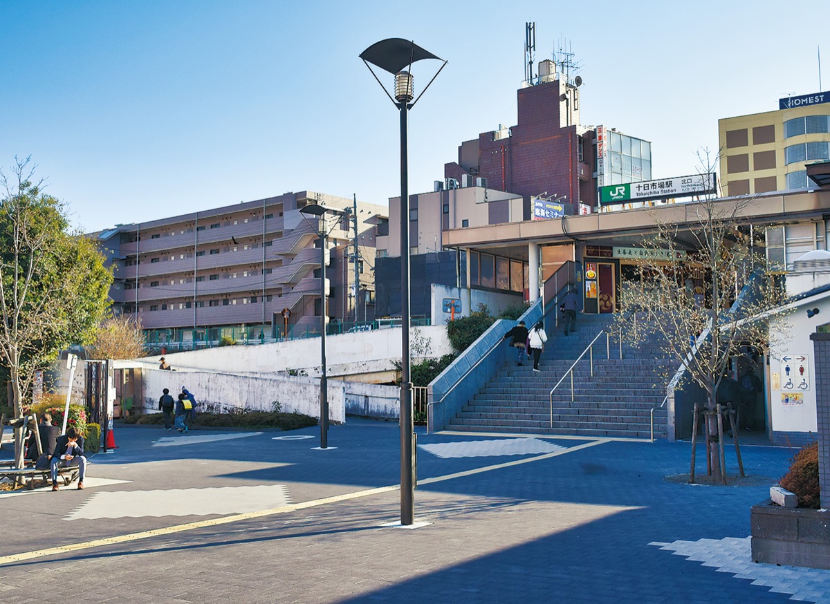 JR十日市場駅周辺地区で現在、歩道の勾配改修や視覚障害者誘導用ブロック敷設などのバリアフリー化工事が進んでいる。今年度は駅南北のロータリー周辺で実施(北口は2月末に概ね終了予定)。全体の整備終了は22年度を予定している。