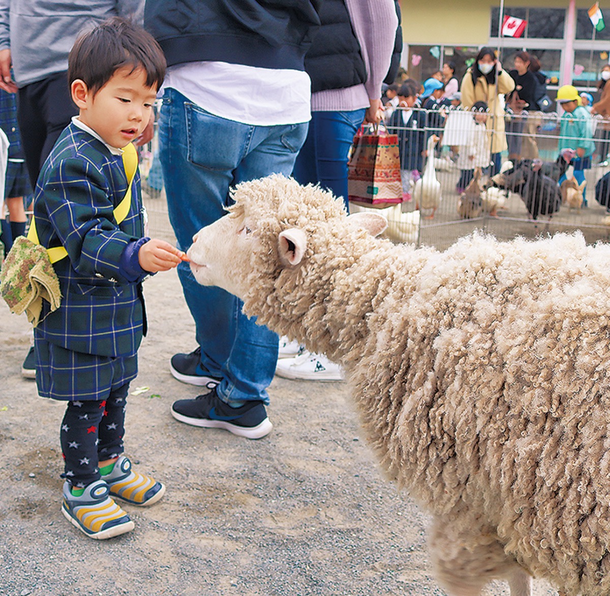 八朔幼稚園の園庭で14日、多くの動物が集まる「一日動物村」というイベントが開催された。