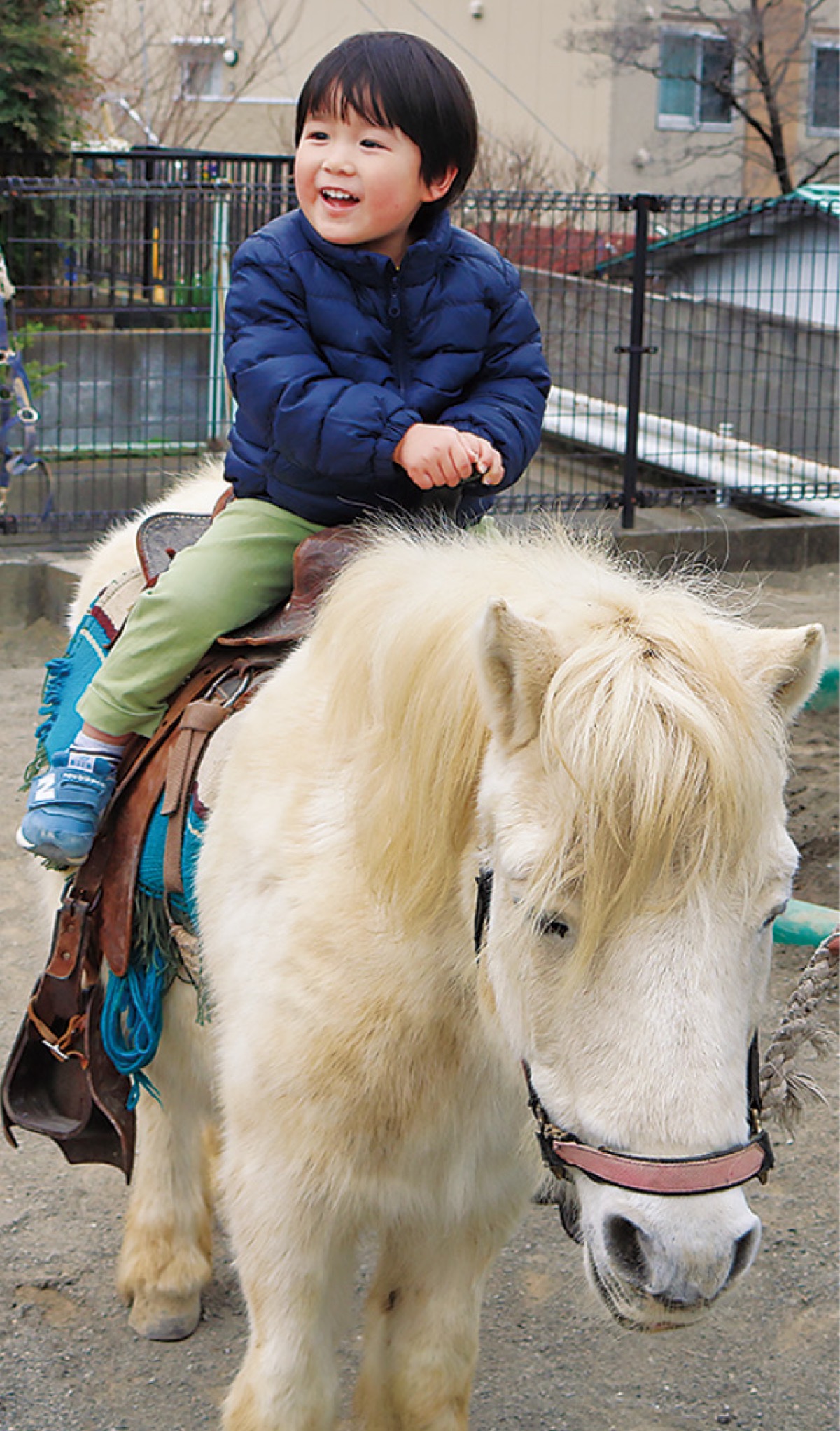 羊に餌を食べさせていた船崎正靖君(3)は、「羊さんに初めて餌をあげた。美味しく食べてくれた」と興奮気味に話した。また、ポニーに乗った堤岳洋君(同)は「ちょっと怖かった。でもお馬さんに乗れて、すごく楽しかった」と笑顔を見せた。