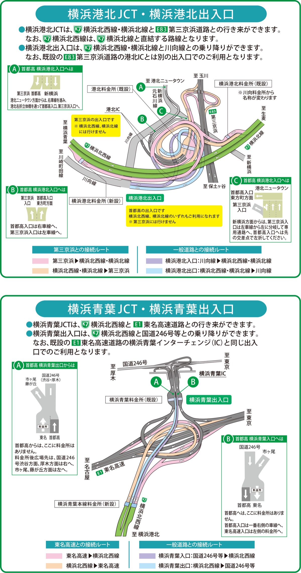 2017年3月に開通した横浜北線(第三京浜道路・横浜港北ジャンクション※以下JCTから首都高横羽線・生麦JCT)と直結する路線として、東名高速道路・横浜青葉JCTと第三京浜道路・横浜港北JCT間を結ぶ、延長約7・1Km(内トンネル部約4・1Km)の便利な路線だ。