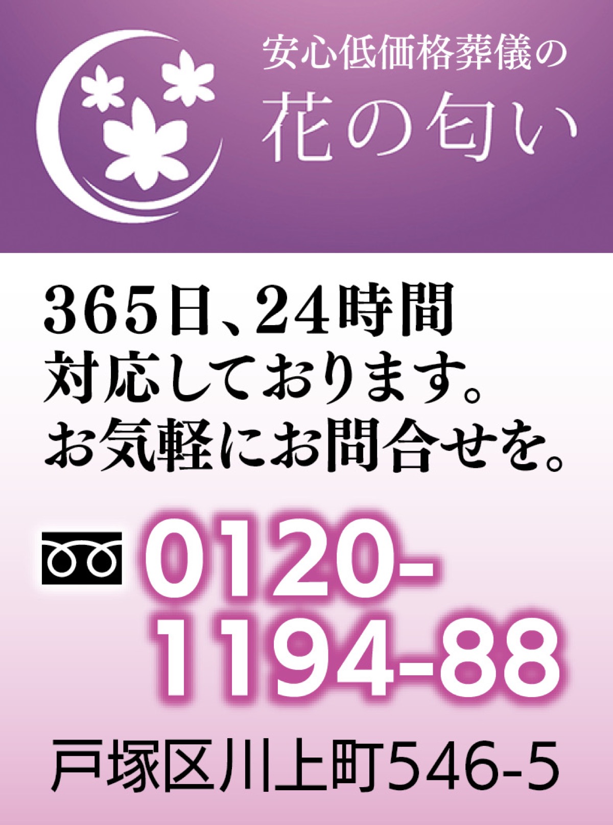 低価格の背景にあるのは河西代表の「つらい経験」だ。「父の死の際、失意の中で冷静な判断ができず、依頼した葬儀社に言われるまま内容や金額を決められてしまい…数日後とても後悔した」と振り返る。その教訓を生かし同社を設立。質の高い葬儀に必要なのは金額の大小ではなく、「どれだけ遺族に寄り添えるか」だと再認識した。「弊社が掲げるのは安心低価格。生前予約でエンディングノートを進呈します。まずはお電話を」