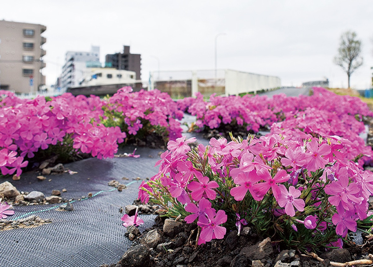 恩田川堤防で芝桜見ごろ