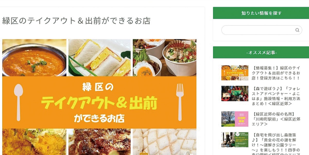 地域密着型メディア「ぐりすま(GREEN SMILE)」が、区内の飲食店のテイクアウトや出前の情報を積極的に発信している。